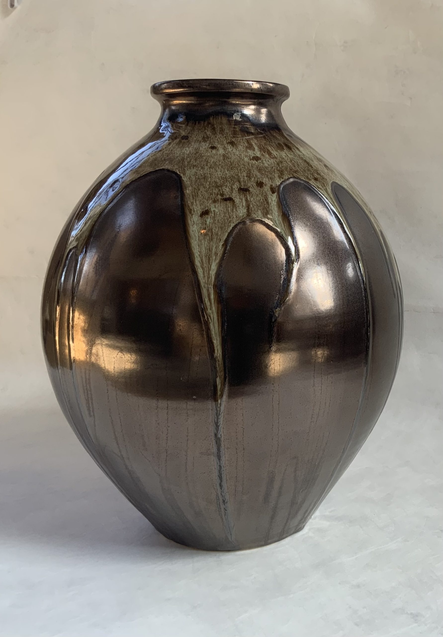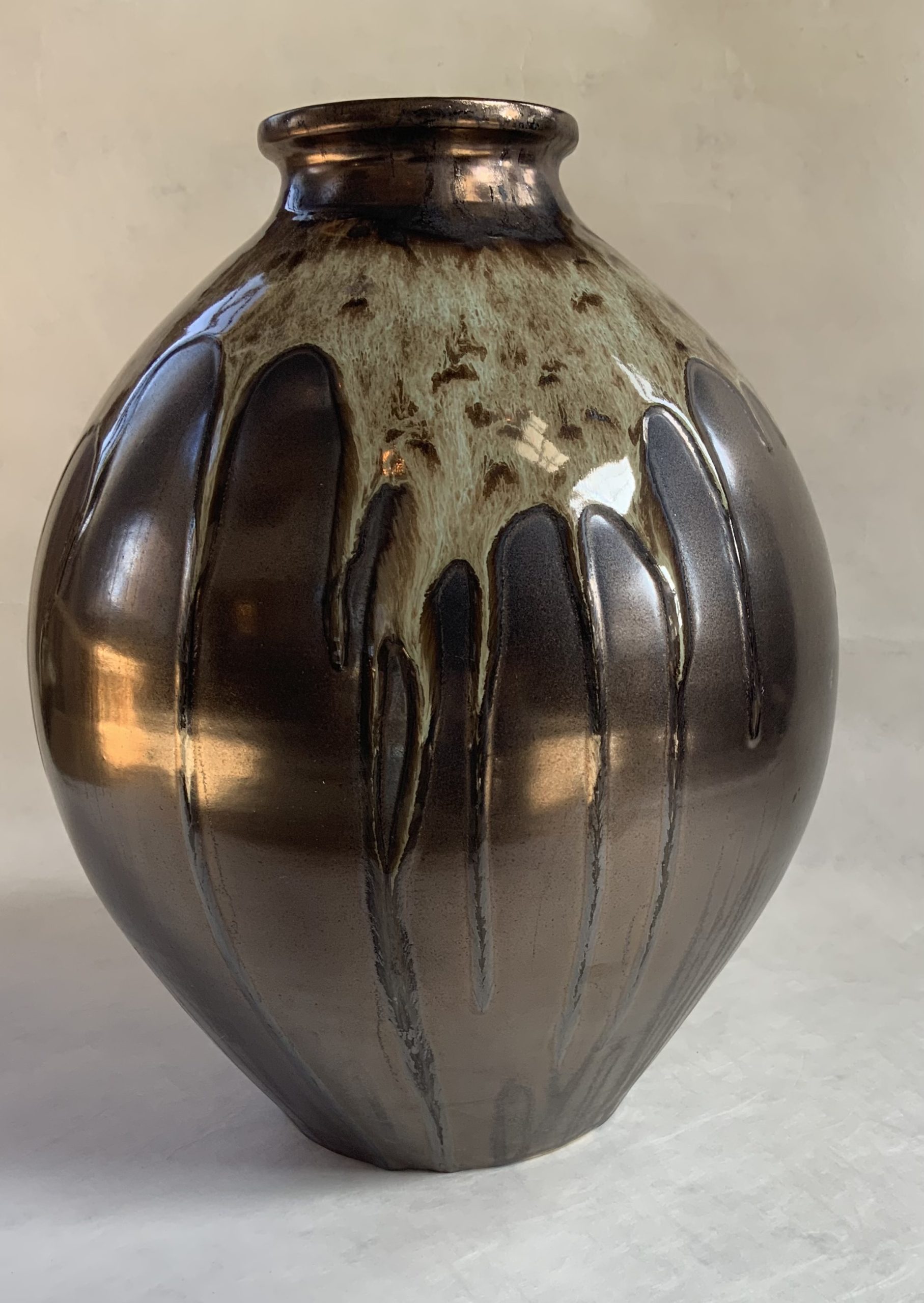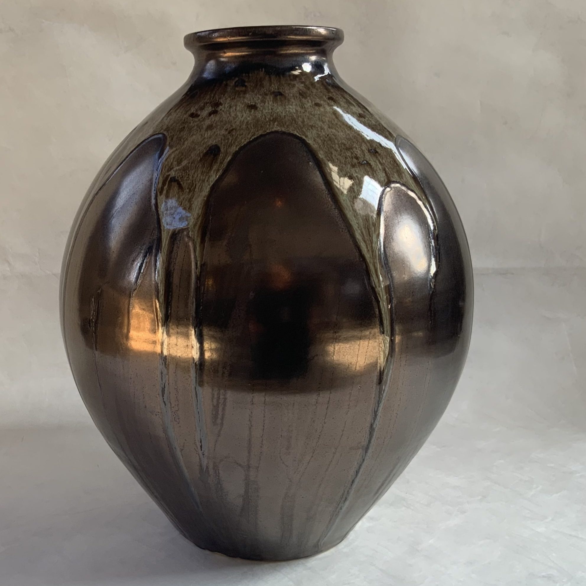 Unik Underbar vas i brons med grågrönbegie detaljer, endast detta exemplaret. maila om ni vill ha mer bilder.